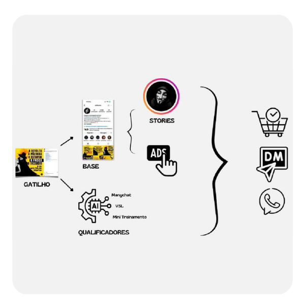 Ao invés de estudar primeiro, nós entregamos funil e produtos prontos que podem ser aplicados em 16 nichos diferentes, acompanhamos a implementação, suporte 7 dias na semana e ainda entregamos Agentes IA que fazem 70% do trabalho desde o mapeamento da persona até a produção dos criativos e construção da página de vendas e formatos de conversão.